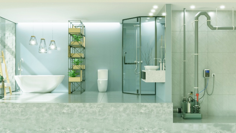 这样,才能将地下室的污水从低处排放到高处的主排污管道中,这样才能做到反重力排水,让水流从低往高处走,这是一种更加干净简便的排水方式。