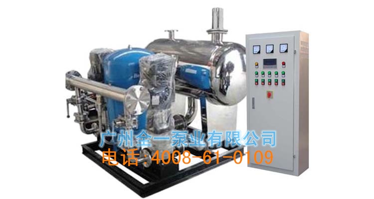 组成: 不锈钢泵机组, PLC控制柜, 气压罐, 测压稳压罐、压力传感器, 糟钢管, 不锈钢钢管, 大小头转换等配件. 控制柜的变频器采用ABB变频器、LG变频器、西门子变频器、施耐德变频器等进口品牌, 配件采用正泰、人民、施耐德、西门子等国内外知名品牌