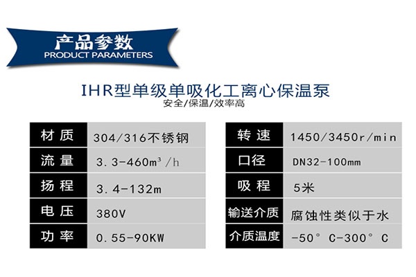5. IHR不锈钢一种保温泵可用于 无机酸碱溶液, 有机酸碱化学溶液抽吸
